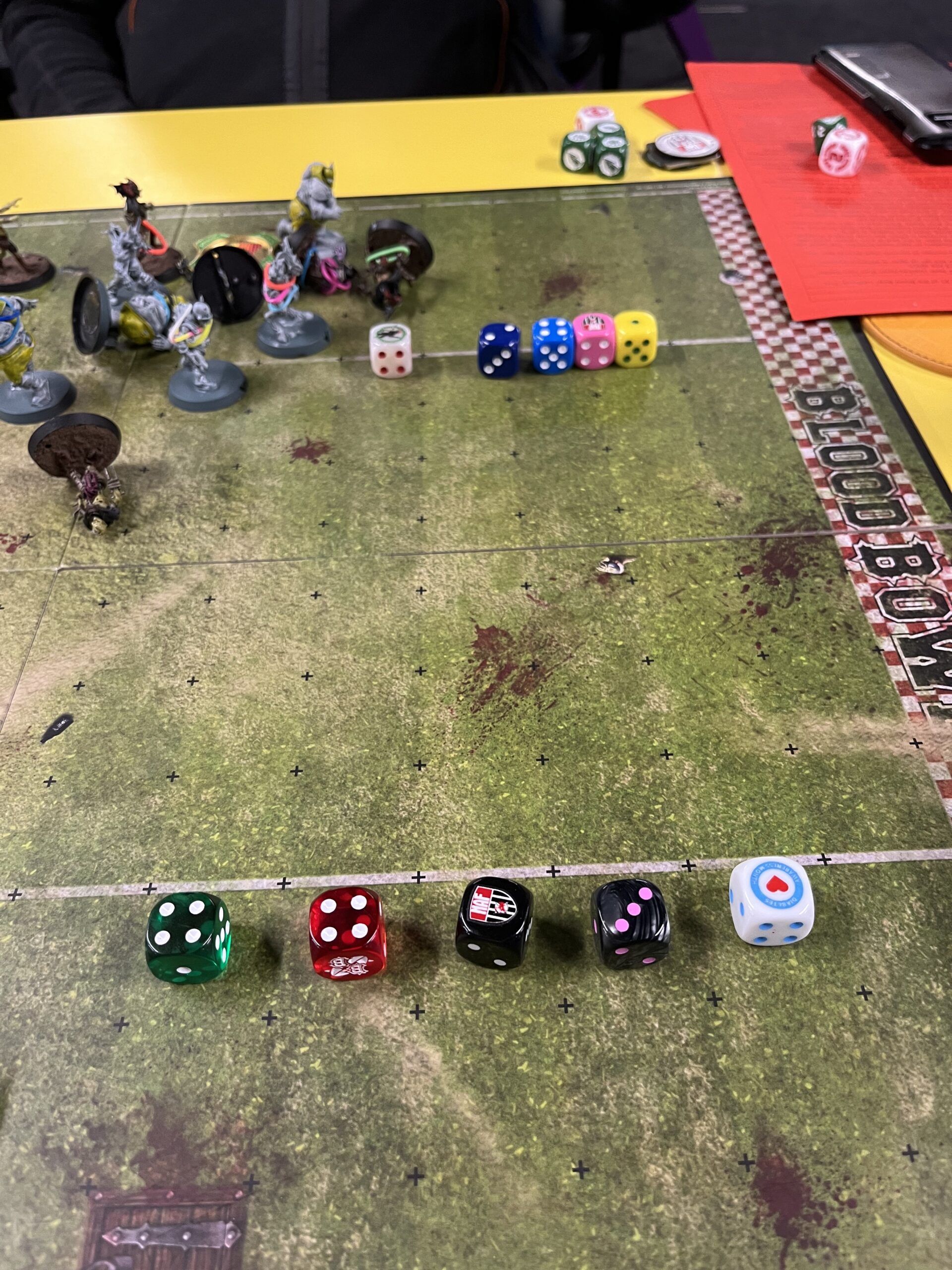The match was a brutal battle, spread across two days. On the first evening, 16 rounds were played, but with the score tied 1-1, the game moved into extra time for another 8 rounds. Both teams suffered knockouts and casualties, but the Ash Kickers had the edge, with rerolls and winning the toss to receive. Despite this advantage, the Green Bay Pukers held firm and kept the Ash Kickers from scoring.